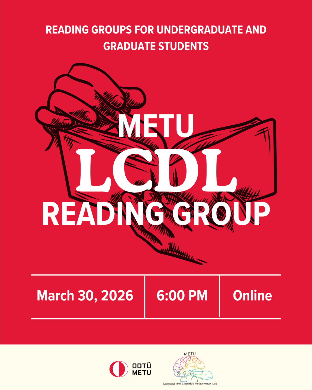 If you would like to join, please email lcd@metu.edu.tr with the subject line "Reading Group Participation." You can also visit our website for more information: https://langcog.metu.edu.tr.